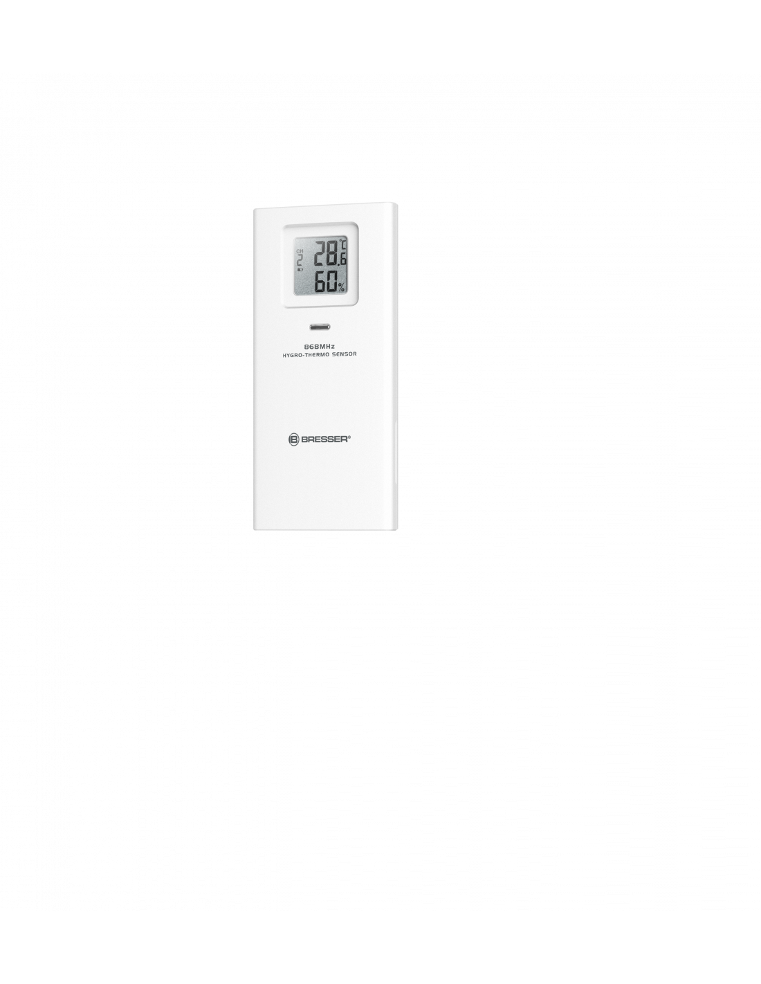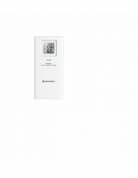 This high-performance outdoor temperature and humidity sensor is the perfect extension for your BRESSER weather station. The sensor transmits measurement data over an ultra-long wireless range of to 150 metres at a frequency of 868 MHz. There are seven different wireless channels available to choose from. Thanks to the built-in display, you can also use the precision thermo-hygro sensor as a standalone solution without a weather centre.