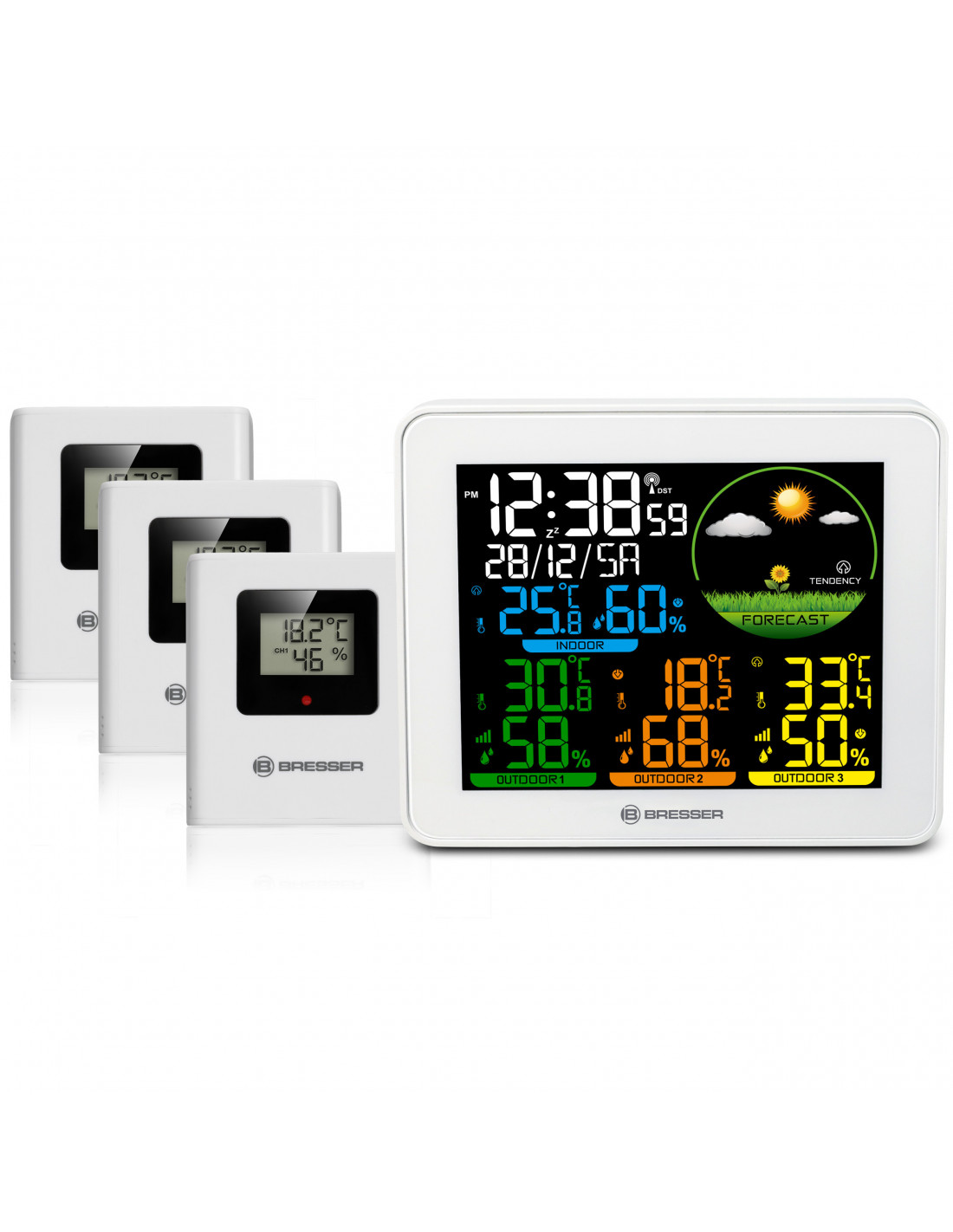 _x000D_ Discover the BRESSER Colour Weather Station with 3 Outdoor Sensors and enjoy a complete overview of the weather and indoor climate at various locations!