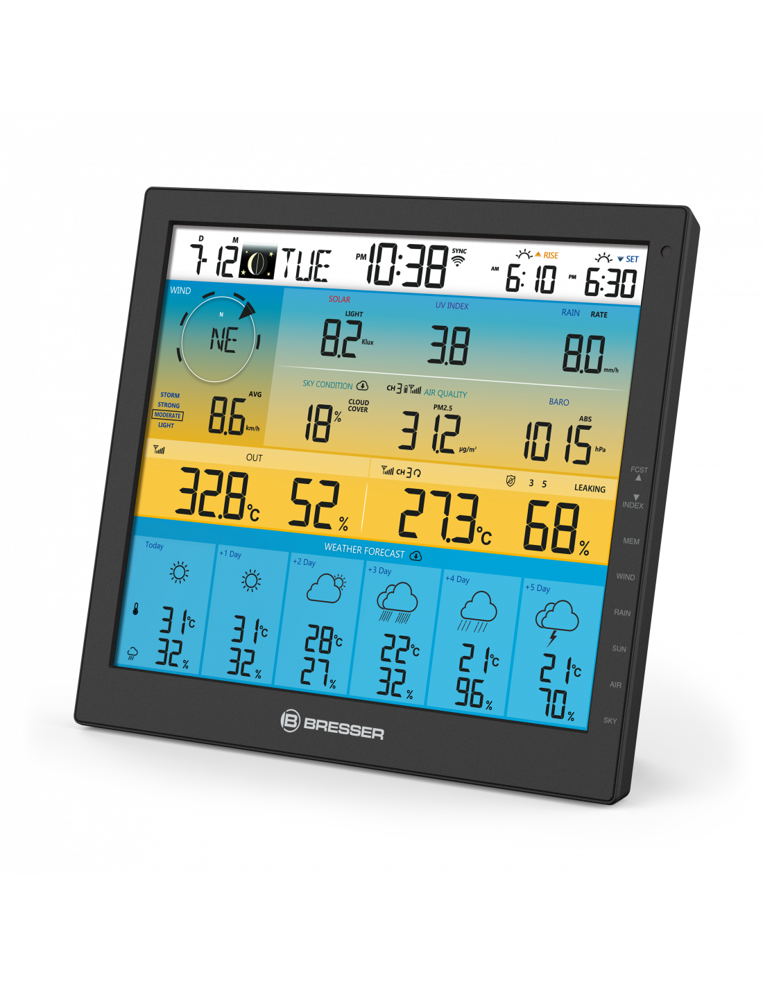 Perfect for a neighbouring flat or large offices-with the additional base station for your existing BRESSER 6-day 4CAST PRO SF Wi-Fi Weather Station, you can view the measurement data from your 7-in-1 solar-powered outdoor sensor (not included) in two different locations. The measurements are displayed on the stylish 25.4 cm (10'') colour display. Simply pair the additional base station with the outdoor sensor, and the measurements for temperature, humidity, wind speed, wind direction, precipitation, UV level and light intensity will be displayed on the large display. Thanks to the built-in Wi-Fi function, you can also access the 6-day weather forecast, visibility and cloud cover from the Pro Weather Live server directly on the display.