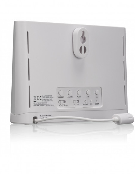 _x000D_ The clearly structured display on the base station also displays a range of historical data. It enables internal storage and evaluation of the measured data over a 24-hour period. Using the measured data, the weather station calculates a very reliable local weather trend forecast for the next 12 hours, which is indicated on the display by six graphical symbols. There is a programmable alarm function for maximum and minimum values, which can emit an acoustic alarm and light signal if either value is reached. A special frost/ice warning alarm can also be configured for outdoor temperatures from -3 °C.