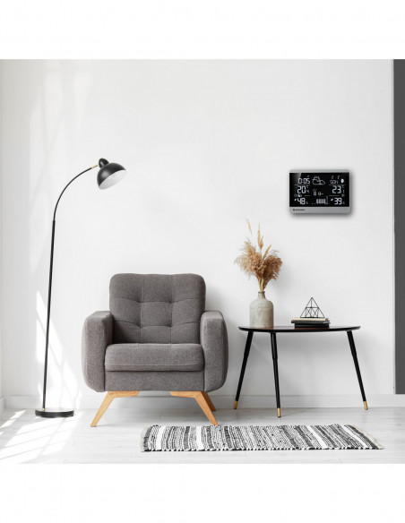 With the BRESSER Radio Weather Station ClimateTemp NDH-NEO, you are always well-informed about sun, rain, and more. This stylish weather station with external sensor offers all the important information at a glance: temperature and humidity inside and outside as well as a reliable graphical weather forecast ensure that you are always up-to-date meteorologically. The elegant display fits perfectly into any living or working environment.