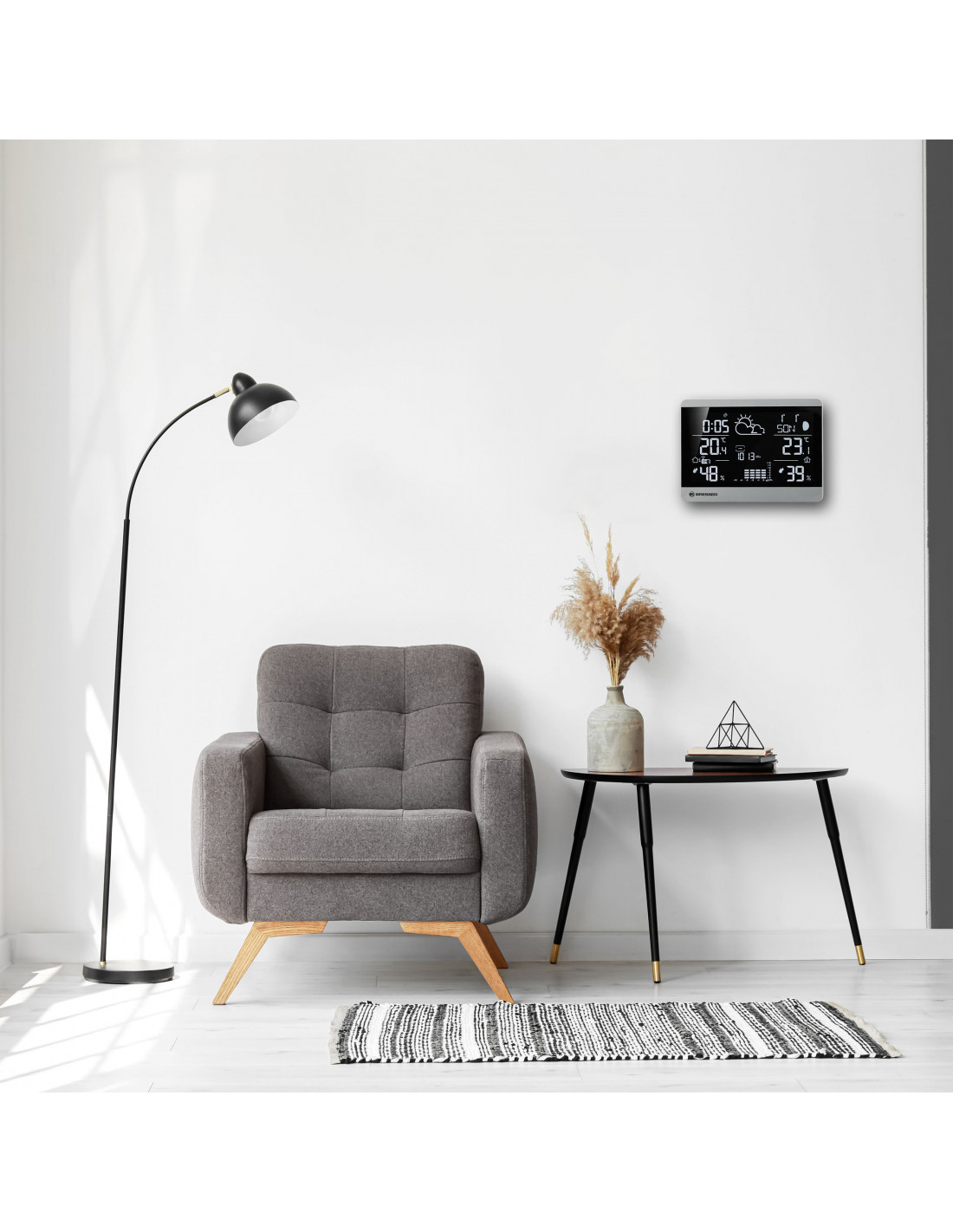 _x000D_ Wake up in the morning and immediately know if you need to pack sunglasses or an umbrella? The graphical weather forecast of the radio weather station provides a precise prediction, allowing you to reliably plan your activities in advance. Additionally, with the air pressure display including history, you can always keep an eye on the weather trend.