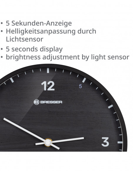 BRESSER MyTime LEDsec wall clock 24 cm with temperature display