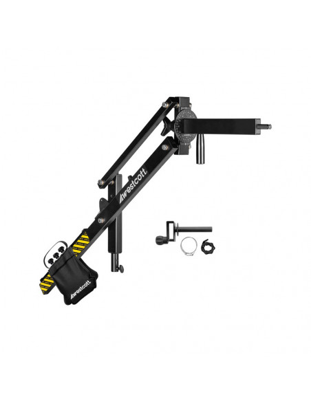 Effortless precision and control Experience effortless light precision and full range of motion with the Westcott Easy Boom. Designed with brass bearings for ultra smooth movement, this heavy duty arm has 360° rotation, 26â extended reach and robust safety features. Quick to assemble and easy to adjust. The perfect tool to improve your lighting and achieve excellent results with ease. Highlights Great reach & consistency Flexible counterweight and mounting options Robust and compact design Enhanced safety features Effortless light precision Designed for easy light positioning, the Westcott Easy Boom offers full range of motion and 360° rotation for precise control. Equipped with brass bearings, it allows ultra smooth adjustments at any height or angle. With a 66 cm reach and full rotation, this arm simplifies complex lighting set ups and increases your creative freedom in the studio. Precise and consistent light control This compact swivel arm features a rotary knob that rotates 360° on the extension arm, allowing precise light angle adjustment. As you adjust the height, the arm maintains a constant light angle, ensuring consistent light quality on your subject. Flexible counterweight options The Easy Boom is equipped with a sliding counterweight system for different sizes of lamps and modifiers. It can be balanced using the included refillable weight bag or optional weight plates for optimal stability. Enhanced safety features The Easy Boom has safety in mind and features a braided safety cable and steel locking pin for safe operation and peace of mind. These features protect your equipment and staff, making it a reliable choice for busy studios and production sets. Compact design and easy installation The Easy Boom has a 5/8 âbaby pin for attaching your lamp and a 5/8â receiver for secure mounting on a tripod. A C tripod is recommended for optimal stability. It is quick to assemble without tools, so you can start shooting faster. The tree's compact and robust design can carry up to 6.8 kg. of equipment, ensuring durability and long lasting performance in any studio setting., Mount Type: 5/8" Male; Baby Pin Max. Load Weight: 6.8 kg Max. Counterweight: 8.4 kg Extended Length: 144.8 cm Degree of Rotation: 360° Dimensions: 133.4 à 36.7 à 13.2 cm Folded Size: 100.5 à 23.5 à 14.0 cm Item Weight: 4.6 kg Materials: Aluminum, Steel, Brass, Plastic, and Nylon 2 year warranty Use & Care Instructions IMPORTANT: Always insert the locking pin before adding or removing lights or counterweights from the Easy Boom. Ensure the Easy Boom is securely attached to a suitable heavy duty light stand or c stand. Failure to do so may lead to equipment damage or bodily injury., 1 à Westcott Easy Boom 1 à Weight Plate Bracket 1 à Weight Plate Clamp 1 à Refillable Weight Bag 1 à Steel Locking Pin 1 à Safety Wire