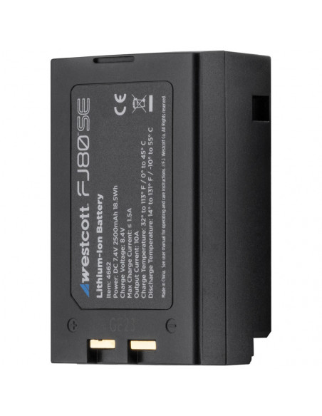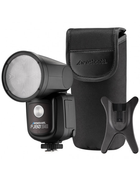 Never miss a shot again Improve your photography with this powerful Westcott FJ80 SE S 80Ws Speedlight for Sony Cameras with round head, which delivers 550+ full power flashes per charge, provides even light coverage and is easy to operate. This Speedlight can also be used as a portable flash and transmitter for the FJ wireless flash system, and the hot shoe mount is compatible with Sony cameras. Never miss another shot with exceptional lighting performance at a price that shines as brightly as your creativity. Highlights Compatible with Sony cameras Precise color temperature stability Manual & TTL modes and High Speed Sync Durable and wireless The Westcott FJ80 SE S 80Ws Speedlight for Sony Cameras with round head has an output of 80W and provides even coverage both on and off camera. and with its durable, all metal flash shoe, it has a secure, reliable connection. It features reliable wireless communication up to 100 m in high interference locations, such as weddings and events. Precise color temperature stability Accurate color temperature stability of 6500K is available across the entire output range of 9 stops. A gel and magnetic ring are included for 5500K environments. Battery capacity and fast recycling The flash includes a removable 2500mAh lithium ion battery with approximately 550 flashes at full power per charge and a fast recycling time of 0.05 to 1.8 seconds. And with the self controlled heat protection, it ensures that you can keep working safely and use it for a long time. Flash modes and LCD The FJ80 SE features Manual and TTL flash modes, High Speed Sync (HSS) up to 1/8000s, and Front and Rear Curtain Sync. The intuitive menu system with LCD has easy operation and lets you control the flash's various modes., Flash head Maximum Power: 80Ws Energy Range: 9 F Stop (0.3 80 Ws) Flash Duration (t0.1): Normal: (t0.1): 1/266 1/3300s Freeze: (t0.1): 1/500 1/16670s Flash Duration (t0.5): Normal: (t0.5): 1/800 1/10000s Freeze: (t0.5): 1/1500 1/50000s Recycle Time: .05s 1.8s Continuous Capture: 20 FPS (Camera Model Dependent) Color Temperature Stability: Normal/TTL/HSS: 6500 ±200K Freeze: 6500K ±400K (E.R. 1 9) Mounting System: FJ80 Magnetic Mount (Ñ75) Flash Increments: 0.1 Stop / 1.0 Stop Flash Modes: Manual, TTL IGBT: Yes Exposure Compensation: ±3 Modeling Lamp; 1, 2, 3, Auto, Off Sync Functions: HSS, Normal (Front & Rear Curtain), Freeze Sync Speed: 1/8000s (High Speed) Wireless Frequency: 2.4 GHz Wireless Channels: 31 (01 31) Wireless Groups: Host: 6, Client: 16 Wireless Range: 328' (100m) Light Mount Type: Hot Shoe Auto Dump: Yes Audible Beep: Yes Auto. Memory Recall: Yes Battery Flashes per Charge: 550+ @Full Power Battery Type: Lithium ion Battery Capacity: 17.76 Wh, 1600mAh Battery Voltage: 7.4V Charge Power: 12.6V @1A Battery Removable: Yes Charge Time: â¤3 Hours Charge Cycles: 200+ (@80% after 200) Charging Temperature; 32° to 113°F (0° to 45°C) Discharge Temperature; 14° 131°F ( 10° 55°C) Electrical Input Power: AC 100 240V, 50 60Hz, 0.5A Battery Mount: FJ80 SE Cable Port: USB C for Firmware Updates (PC, Mac) Cooling: Passive Firmware Upgradable: Yes Display: LCD Display (Decimal or Fraction) Operating Temp.: 14° 104°F ( 10° 40°C) Power Cooling: Multi stage Auto. Power Off: Yes Power Type: DC Certifications: CE USB Capability: Firmware Updates (PC, Mac) , 1 à Westcott FJ80 SE S 80Ws Speedlight for Sony Cameras 1 à FJ80 SE Rechargeable Lithium ion Battery 1 à FJ80 SE Battery Charger & Cord 1 à FJ80 SE AC Adapter 1 à FJ80 SE Speedlight Shoe Stand 1 à FJ80 SE Magnetic Gel Ring 1 à Color Correction Gel 1 à USB C to USB A Cable 1 à FJ80 SE Travel Case