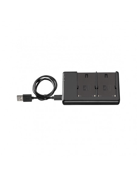 The dual charger uses a USB connection for power, eliminating the need to carry a heavy AC power supply with you. Simply plug the charger into a standard USB charger or a USB power bank (all require 2.1A minimum voltage, sold separately), making this bundle a truly portable power solution for your lighting.,