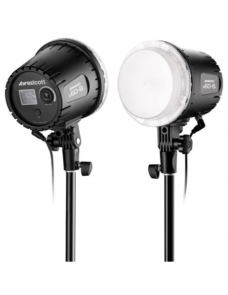 Achieve softer, more flattering content lighting The Westcott U60 B Bi Color LED 3 Light Softbox Kit stands out for its soft, diffuse lighting. This compact 60W bi color LED has impressive color accuracy with ratings up to 97 CRI, 99 TLCI and 83 SSI. It delivers softer, more flattering light than standard LED panels, while providing lifelike colors and skin tones. For video content creators, the U60 B offers quiet, flicker free operation at high frame rates up to 4,000 FPS, ensuring professional videos are free of unwanted noise and flicker. Highlights Soft and flattering lighting Impressive color accuracy Precise control Quick installation Precise control at your fingertips Easily take control of your lighting. Adjust brightness from 1% to 100% and fine tune color temperature from 3200K to 5600K with the intuitive buttons. You can do this via the built in LCD and onboard controls, or with the included wireless remote control. With a range of up to 35 meters, the remote control offers ultimate convenience and flexibility. Plus, it lets you control multiple U60 B LEDs simultaneously, streamlining your lighting setup. Quick installation, anywhere Efficiency is essential whether you're on location or in your home studio. The U60 B's quick installation process is a game changer. The quick magnetic attachment of the light modifier allows you to attach the included folding octabox or diffusion hood without the hassle of additional tools or speed rings. This time saving feature lets you concentrate on capturing stunning content. Versatile and flexible lighting options With the U60 B LED Kit, you have the freedom to customize your lighting for any project. Use the 22" octabox and diffusion hood for soft or dramatic lighting. The included aluminum light stands provide precise light positioning, and the tilt bracket can be rotated 360 degrees. , Lighting Lamp Type: 60W LED Beam Angle: 120° (without softbox) Dimmable Range: 1 100% Auto Memory Recall: Yes Flicker Free: Up to 4000 fps Control Range: Up to 115' (Up to 35 meters) Cooling: Low Decibel Fan Photometric Data CCT: 3200 5600K CRI: Up to 97 (without softbox) TLCI: Up to 99 (without softbox) SSI: Up to 83 (without softbox) Foot Candles (1m): 274.06 (without softbox) Lux (1m); 2950 (without softbox) Electrical Amps: 5A Max. Voltage: 15V ~ 21V Watts: 68W Input Power: 100 to 240 VAC, 50 / 60 Hz Output Power: 19V DC @ 5A Max. Cable Connector: Barrel Plug (5.5 x 2.1mm) Max. Output: 60W Operating Temp.: 32º 95°F (0º 35°C) Power Cord: 9.85 ft. (3m) Auto. Power Off: @Temperature > 167°F (75°C) Power Type: AC/DC (DC Components Sold Separately) Certifications: CE, C UL US Power Region: Type C (EU) Light Modifiers Shape: 22" Octagonal Reflective Color: Silver Mounting Style: Modifiers: Magnetic mount; Umbrellas: Round and Hex shafts up to 9mm Modifier Style: Collapsible Softbox , 3 x U60 B Bi Color LED 2 x U60 B 22" Magnetic Collapsible Octabox 3 x U60 B Magnetic Diffusion Dome 1 x U60 B Remote Control 3 x U60 B AC Adapter & Cable 2 x Lightweight Light Stand (6.5') 1 x Lightweight Backlight Stand (3')
