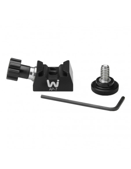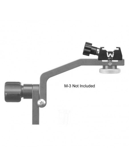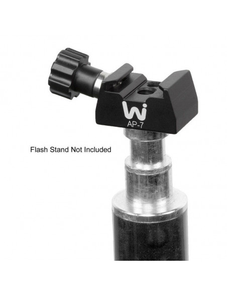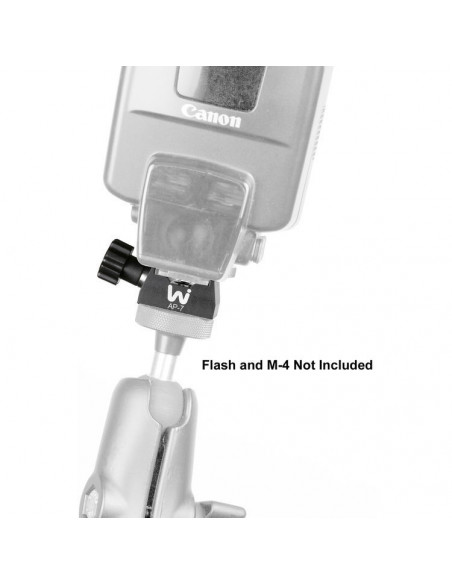 The AP 7 is a Universal Flash Adapter which securely holds most flashes, shoe cords or shoe adapters attached to other devices. It was designed to mount natively into the M 3 recessed mount portion of our flash brackets.