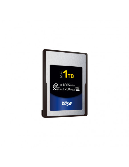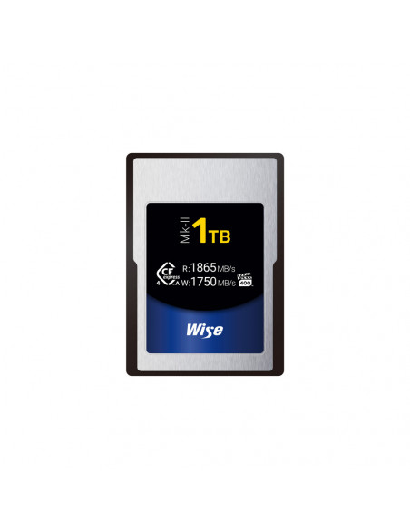 Fast storage capacity Designed for the Sony Alpha and FX lines, the CFX4 A series unlocks the cameras' full potential by supporting all video codecs, including slow and quick modes in the finest HD/4K in XAVC S I format requiring up to 890 and 1200 Mbps respectively. The Wise 1TB CFexpress 4.0 Type A Mk II Memory Card is ideal for professional photographers and videographers. Highlights Designed for the Sony Alpha and FX lines Maximum speeds of up to 1865 MB/s read and 1750 MB/s write Made for 8K Pro photo and video Non stop recording time Maximum speeds The CFX4 A has maximum speeds of up to 1865 MB/s read and 1750 MB/s write. Its burst read and write speeds are more than 6 times faster than the best SD UHS II media, leveraging the camera's maximum performance. Made for 8K Pro photo and video The CFX4 A captures detailed high definition frames without performance degradation as capacity is used up through a constant, sustained write speed. Non stop recording time The large capacity of up to 1 TB provides ample space for RAW images. Creators can store more content non stop in tough and unforgiving environments. Ultimate durability Wise CFexpress Type A cards are protected against moisture, dust, X rays, magnets and shock. , Model: CFX4 A1024M2 Capacity: 1TB Max read: 1865MB/s Max write: 1750 MB/s Min sustained write: 400 MB/s Form Factor: CFexpress Type A Interface: PCIe Gen 4x1 NVMe 1.4 Guaranteed video performance: VPG400 NAND flash: TLC Dimensions: 20 x 28 x 2.8 mm Weight: 2 g Operating temperature: 12ËC to 72ËC Storage temperature: 25ËC to 85ËC 2 year warranty ,For compatibility use this link