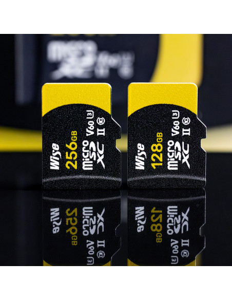 Designed by professionals, for professionals The small, yet mighty Wise 256GB microSDXC UHS II V60 Memory Card is made for professional drones and action cameras. The extra speed provides peace of mind so creators can enjoy their exploration to the fullest. Highlights Compatible with professional drones and action cameras Speed up to 290 MB/s read and 150 MB/s write Non stop recording time Speed up to 290 MB/S read For creators, efficiency counts. Wise microSDXC UHS II V60 card stands up to the toughest demands for photos and video. Read speeds up to 290 MB/s optimise your post production workflow and write speeds up to 150 MB/s allow you to effortlessly capture high quality video. Stress free 4K and 8K The best thing about the V60 is that players of action cameras or drones don't have to pay extra attention to whether it works or not. It records everything silky smooth without hiccups or crashes. Non stop recording time The large capacity, of 256GB, provides enough space for continuous high quality video. Filmmakers can record for longer without having to change cards often. Ultimate durability The microSDXC UHS II V60 Memory Card is water , dust , shock , X ray and stress resistant. It can be used in temperatures from 25ËC to 85ËC. , Model: mSD S256 Capacity: 256GB Video speed class: V60 Max. read: 290 MB/s Max. write: 150 MB/s Min. sustained write: 60 MB/s Form factor: microSDXC Interface: UHS II NAND flash: TLC Dimensions: 15 x 11 x 1 mm Weight: 1 g Operating temperature: 13ËC to 25ËC Storage temperature: 40ËC to 85ËC 5 year warranty