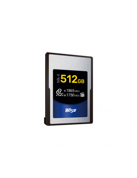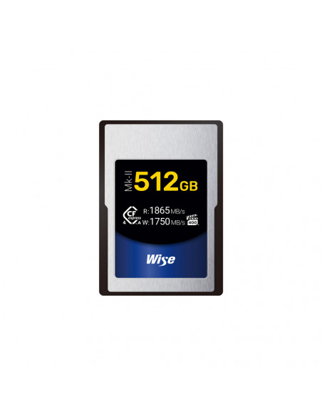 Fast storage capacity Designed for the Sony Alpha and FX lines, the CFX4 A series unlocks the cameras' full potential by supporting all video codecs, including slow and quick modes in the finest HD/4K in XAVC S I format requiring up to 890 and 1200 Mbps respectively. The Wise 512GB CFexpress 4.0 Type A Mk II Memory Card is ideal for professional photographers and videographers. Highlights Designed for the Sony Alpha and FX lines Maximum speeds of up to 1865 MB/s read and 1750 MB/s write Made for 8K Pro photo and video Non stop recording time Maximum speeds The CFX4 A has maximum speeds of up to 1865 MB/s read and 1750 MB/s write. Its burst read and write speeds are more than 6 times faster than the best SD UHS II media, leveraging the camera's maximum performance. Made for 8K Pro photo and video The CFX4 A captures detailed high definition frames without performance degradation as capacity is used up through a constant, sustained write speed. Non stop recording time The large capacity of up to 1 TB provides ample space for RAW images. Creators can store more content non stop in tough and unforgiving environments. Ultimate durability Wise CFexpress Type A cards are protected against moisture, dust, X rays, magnets and shock. , Model: CFX4 A512M2 Capacity: 512GB Max read: 1865MB/s Max write: 1750 MB/s Min sustained write: 400 MB/s Form Factor: CFexpress Type A Interface: PCIe Gen 4x1 NVMe 1.4 Guaranteed video performance: VPG400 NAND flash: TLC Dimensions: 20 x 28 x 2.8 mm Weight: 2 g Operating temperature: 12ËC to 72ËC Storage temperature: 25ËC to 85ËC 2 year warranty ,For compatibility use this link