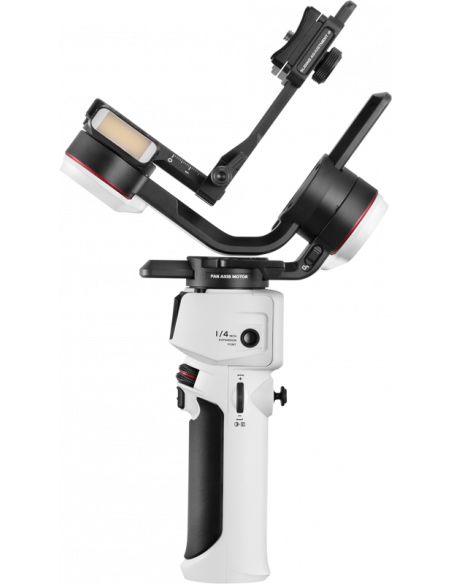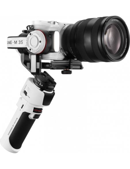 Zhiyun Crane M3S Combo GimbalMed Zhiyun Crane M3S er ergonomien forbedret, og brugerne kan tage billeder ubesværet takket være den nye Bluetooth-udløser, der giver mulighed for trådløs styring af zoom og optagelse med et enkelt tryk. En ny tilpasset to-i-en hurtigudløser gør det muligt for brugeren at skille kameraet fra gimbal'en for at skifte batteri uden at skulle afbalancere kameraet igen.M3S har et lille, men kraftfuldt indbygget tofarvet fyldningslys, der ikke er større end en fingernegl.Takket være en nyudviklet teknologi, som Zhiyun kalder Lumen Amplifier, kan lyset give op til 1000 lux og har en justerbar farvetemperatur på 2700-5500K og er perfekt, hvis du f.eks. ønsker at lysne skygger i skarpt sollys.Gimbal'en leveres med PD hurtig opladning, hvilket betyder at en fuld opladning kun tager to timer og en maksimal batterilevetid er op til 7,5 timer.I kassenCrane M3S GimbalStativTelefonklemme(M2)Rygsæk(M3)Sony Control Cable LN-UCUS-C02Canon-kamera-styringskabel LN-MBUC-B02Panasonic Camera Control Cable LN-UCUC-D07USB Type-C-opladerkabel