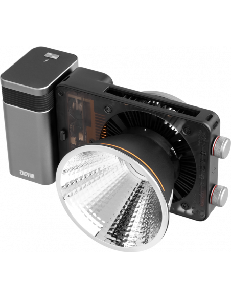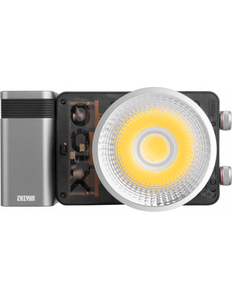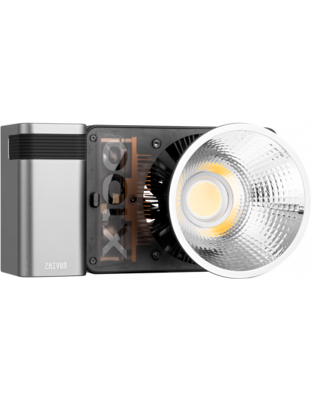 Vægten på kun 385 g og evnen til at levere 100 W professionel effekt gør Zhiyun Molus X100 til en kraftfuld LED-lampe i en lille pakke. X100's CCT-værdi går fra 2700K-6500K med en CRI≥95 og TLCI≥97. Content creators, der er på farten, kan minimere nedetiden med tre måder at strømforsyne lampen på, idet de kan vælge mellem et grebsbatteri, en DC-adapter eller 100W PD hurtig opladning.Brugerne kan nemt justere lysets farvetemperatur og lysstyrke for at opnå den ønskede effekt enten via Bluetooth eller indbyggede kontroller. Med Music Mode på kan lyseffekter udløses af lyd. F.eks. som en lyneffekt, til simulerede skud eller ændring i takt fra musik.Ultrakompakte COB LED-lampeStor effektudgangIntuitiv kontrolFlere strømindstillingerVed 5500K og ved 1m med reflektor har X100 et output på 17032 Lux.Molus-serien fra Zhiyun kan nemt styres via ZY Vega-appen. Appen giver mulighed for styring af både X100 og G60. Med denne app har content creators fuld kontrol over deres belysning, herunder mulighed for at justere individuelle lamper fuldt ud og gruppere flere lamper sammen.Den ultrakompakte belysning får sin minimale form takket være Zhiyuns innovative DynaVort-kølesystem. Et nyt innovativt kølesystem, der består af et gyroskop, der modellerer køleprofilerne og en FOC-blæser for at forhindre overophedning. Teknologien er baseret på en væskedynamik og attitude-kontrolalgoritme, der markant øger køleeffektiviteten gennem en intelligent kontrol over luftstrømsemissioner.Det betyder, at content creators får en ultrakompakt LED-lampe, der er klar til at optage på farten med 100 % jævn belysning uden flimmer.Alle Molus LED-lamper leveres med ZY mount, som gør det nemt at fastgøre en hvilken som helst af Zhiyun lys-modifiers, alt efter dine behov. En adapter til Bowens Mount er også tilgængelig, så du kan bruge dine eksisterende lys-modifiers.Hvad er i kassen:Zhiyun Molus X100Zhiyun mini-reflektor (ZY Mount)120W strømadapter + kabelStrømadapter organizer taskeQuick start guideOpbevaringsposeLommelygte remX100 Grip-batteriBowens mount adapter - B (ZY Mount)