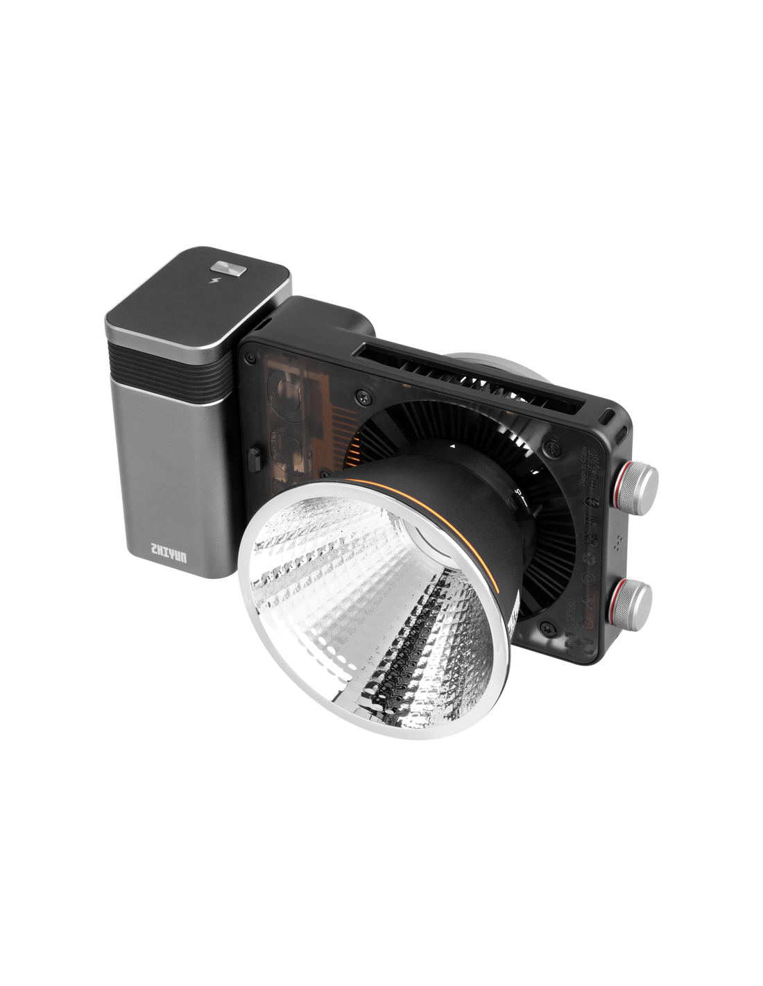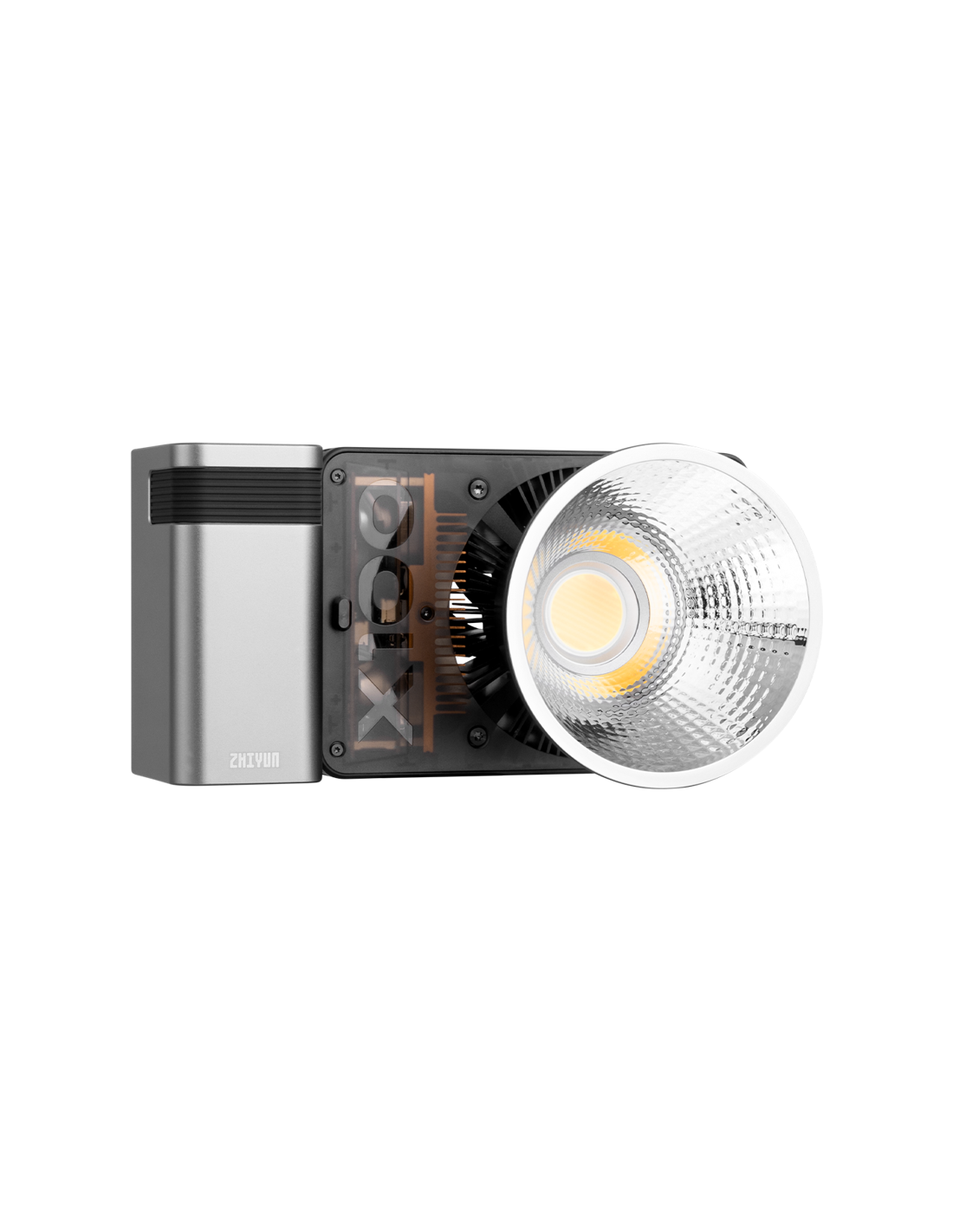 Vægten på kun 385 g og evnen til at levere 100 W professionel effekt gør Zhiyun Molus X100 til en kraftfuld LED-lampe i en lille pakke. X100's CCT-værdi går fra 2700K-6500K med en CRI≥95 og TLCI≥97. Content creators, der er på farten, kan minimere nedetiden med tre måder at strømforsyne lampen på, idet de kan vælge mellem et grebsbatteri, en DC-adapter eller 100W PD hurtig opladning.Brugerne kan nemt justere lysets farvetemperatur og lysstyrke for at opnå den ønskede effekt enten via Bluetooth eller indbyggede kontroller. Med Music Mode på kan lyseffekter udløses af lyd. F.eks. som en lyneffekt, til simulerede skud eller ændring i takt fra musik.Ultrakompakte COB LED-lysStor effektudgangIntuitiv kontrolFlere strømindstillingerVed 5500K og ved 1m med reflektor har X100 et output på 17032 Lux.Molus-serien fra Zhiyun kan nemt styres via ZY Vega-appen. Appen giver mulighed for styring af både X100 og G60. Med denne app har content creators fuld kontrol over deres belysning, herunder mulighed for at justere individuelle lamper fuldt ud og gruppere flere lamper sammen.Den ultrakompakte belysning får sin minimale form takket være Zhiyuns innovative DynaVort-kølesystem. Et nyt innovativt kølesystem, der består af et gyroskop, der modellerer køleprofilerne og en FOC-blæser for at forhindre overophedning. Teknologien er baseret på en væskedynamik og attitude-kontrolalgoritme, der markant øger køleeffektiviteten gennem en intelligent kontrol over luftstrømsemissioner.Det betyder, at content creators får en ultrakompakt LED-lampe, der er klar til at optage på farten med 100 % jævn belysning uden flimmer.Alle Molus LED-lamper leveres med ZY mount, som gør det nemt at fastgøre en hvilken som helst af Zhiyun lys-modifiers, alt efter dine behov. En adapter til Bowens Mount er også tilgængelig, så du kan bruge dine eksisterende lys-modifiers.Hvad er i kassen:Zhiyun Molus X100Zhiyun mini-reflektor (ZY Mount)120W strømadapter + kabelStrømadapter organizer taskeQuick start guideOpbevaringsposeLommelygte remX100 Grip-batteriBowens mount adapter - B (ZY Mount)Zhiyun mini softbox (ZY Mount)